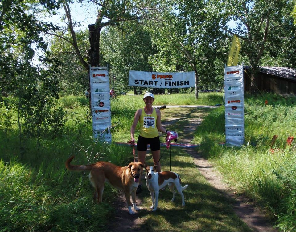 Me and my furry babies at the finish after collecting prize for 3rd lady |